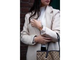 The Monroé Classiqué Solérose watch with rose gold face and charcoal leather band is minimal yet bold to elevate all your looks, day or night.
