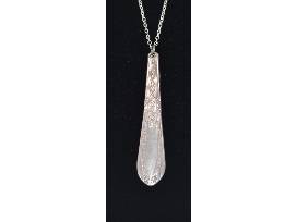 An authentic Oneida silver plate spoon handle is the centerpiece of this unique necklace. The "Lyric" spoon hangs from a 20" sterling silver chain. The necklace contains a vintage, filigree design that will highlight any outfit.