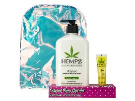 This Hempz gift set includes the original body moisturizer and lip balm to condition and protect your skin. Hempz Original Body Moisturizer helps condition skin with pure hemp seed oil, hinders free radicals, and tempts the senses with a floral-and-banana fragrance. Hempz lip balm in a sweet citrus fragrance conditions with pure hemp seed oil and helps protect chapped lips.