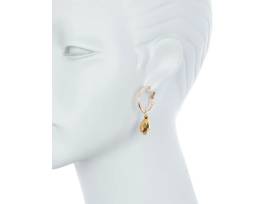 - Gold-tone huggie hoop with faceted teardrop bead earrings