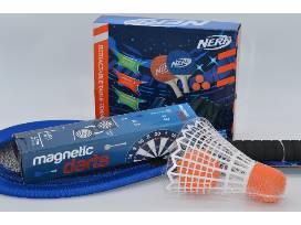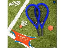 The Nerf Jumbo Badminton Set offers big fun with 2 rackets, a birdie, and a ball. Bring this set from Nerf to your next summer party for added (and possibly competitive) entertainment! The rackets measure over 2 feet in length, the included ball has a 10" diameter and the birdie is 10" long.