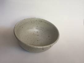Set of four stoneware cereal bowls handmade by alum and alumni parent, Meriel Stern. Speckled White matt glaze.