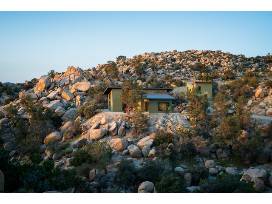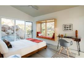 Six days and six nights in an architectural modern desert retreat designed by LA architect Oonagh Ryan,. Nestled in the rocks of Yucca Valley near Joshua Tree, 2 hours from LA. House sleeps 6-7, guest house 3-4. Private, but close to local coffee house, restaurants, national park. Easy access to Joshua Tree National Park for outdoor recreation, Desert Hot Springs, Pappy & Harriet's Pioneertown Palace for live music, great local art and restaurants. Feels remote.