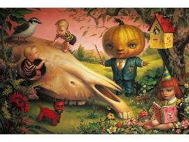 Mark Ryden and Merry Karnowsky released this limited edition lithographic poster in honor of the Art For Hope exhibition at Merry Karnowsky gallery October 1, 2008. The lithograph is printed on heavy weight paper, signed and numbered, and is embossed with the Porterhouse seal in the lower right hand corner. This poster comes with a certificate of authenticity.