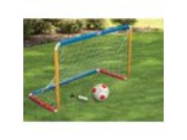 Includes 1 goal with net, 1 soccer ball and 1 pump