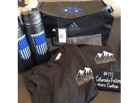6-pk cooler with 2 Colorado Fallen Hero Foundation t-shirts. medium and large