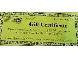 $25 gift certificate to Finish Line Sports (Sugar Land), red Run Texas long sleeve hoodie (Unisex L), Fuel Belt water bottle, Nathan flashing safety light, and peanut brittle for after your run!