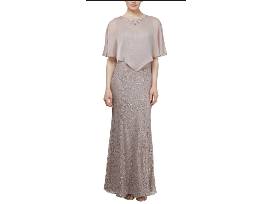 It's time for some fun! Hit the dance floor in this body-hugging sequin lace mermaid dress with a flutter-sleeve capelet, adorned with crystal embellishments.