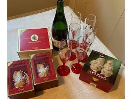 Settle in for a holiday to remember with Gallivant California Bubbly White and six festive red champagne glasses,