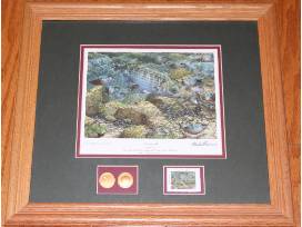 Includes Waterfowl USA National Conservation Edition gold foil medallions and Collector's Edition Cornered Striped Bass stamp dated February 8, 1997.