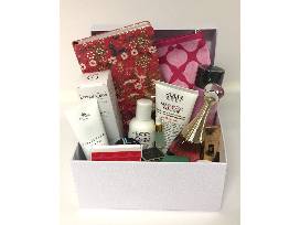 White gift box containing the following: 3.4 oz Dior Jadore fragrance 3.4 oz Cartier fragrance Kiehl's full size ultra facial cleanser Kiehl's full size moisture lotion Kiehl's full size avocado eye cream YSL full size makeup remover YSL full size rouge volupte shine lipstick Leonor Greyl shampoo Raincry polishing wash mini Nest candle La Mer deluxe size sample Estee Lauder re-nutriv deluxe size sample Travel mirror Makeup travel bag and journal (All fitting in a Christian Dior white gift box)