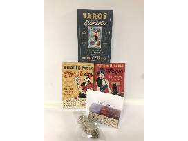 This super witchy fun basket includes: Three books written by Melissa Cynova (Kitchen Table Tarot, Tarot Elements, Kitchen Table Magic), Spell Candles, Sage Bundle and $25 Gift Card to Pathways St. Louis.