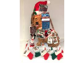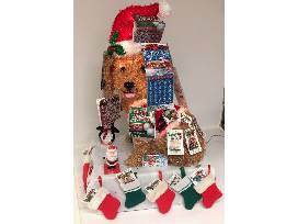 Bid on your chance to be a "Lucky Dog" with this adorable Santa Dog covered in lottery tickets!