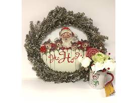 Deck your halls with this Vintage-inspired Holiday Wreath and Faux floral arrangement in a mug-turned-planter. "Happy Pawlidays" with an adorable pup is shown on both sides. Would add cheer to any pet-lover's home, or could be a gift for your favorite veterinarian! Shades of lime and white real-touch foam blooms mix with soft fabric red and pink ones. The white peonies even smell good! There are accent red and white berries and a soft fabric red and white "candy" decoration.