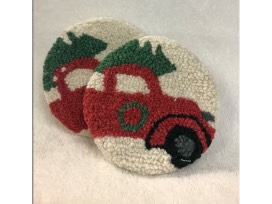 - This set includes 4 coasters with a Christmas truck holiday design.