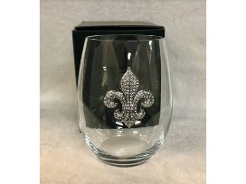 0- Drink in style! This bling wine glass features a Fleur de Lis design.