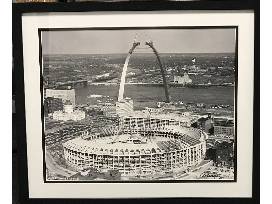 The Arch and "Old" Busch Stadium Under Construction B & W Photo Framed and Matted (22" x 26")