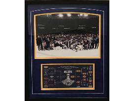 It was one of the greatest moments in St. Louis Sports History, the Blues won the Stanley Cup! This 22" x 26" Framed and Matted team photo after their victory - along with the bracket for the Stanley Cup.