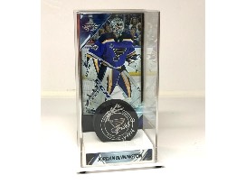 Authentic signed Jordan Binningham puck with inscription 1st NHL shut out and Stanley Cup Champions display case