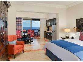 This junior (studio) suite offers over 538 sq ft of luxurious living space. It includes a private balcony or terrace with a view of the spectacular blue Pacific Ocean and a cozy sitting area. The sleeping area will sleep up to 4, with a choice of 2 double beds (both in the same sleeping area) or a king sized bed. It includes satellite television, mini-kitchen with coffee maker, large bathroom with shower, and air conditioning.