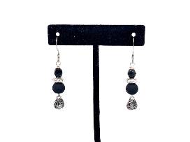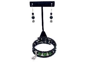 Wrap bracelet and earrings set featuring Lampwork glass focal beads by Nicola Herbert, with a whimsical kitty charm. Earrings have stainless steel ear wires.