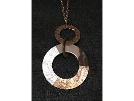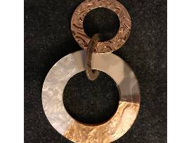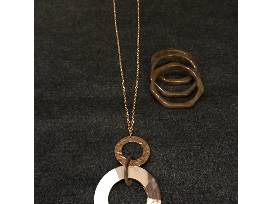 Long Gold Chain Necklace with Earth Tone Brown and Beige Hoops