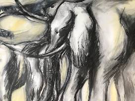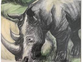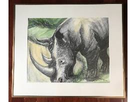 Original Art Work by Artist Ricci Lou Keeler, Size 32 in. x 27 in. These beautiful companion pictures of the Rhinoceros and Elephants were drawn in watercolors and charcoal. Artist Ricci Keeler was inspired to paint these items after her trip to Light of Hope in Kenya.