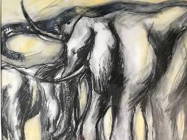 Note: The Rhinoceros painting is framed; the Elephant picture is framed without a glass.