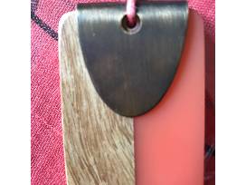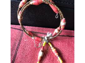 Silvia Alexander Black Purse With Salmon Colored Scarf, FUMI Metalic Bangle (or could be used as a purse hook!), Lovely Salmon/Wood Necklace and a Beaded Bracelet and Matching Earrings Made By Our Girls at Light of Hope in Kenya.