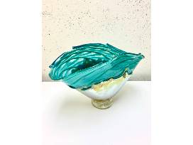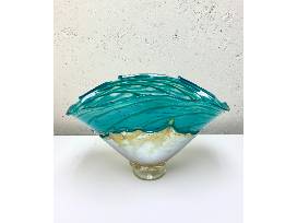 Hand-blown Optic Turquoise and Yellow Iris Overlay