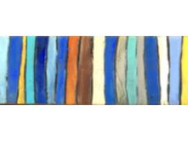 Original art by M.Robinson, measuring 5" x 47", part of the long and narrow collection. Brightly colored, heavily abstract acrylic paintings on hand-made boxes that have been deconstructed, then finished with resin. Artwork is the collaboration of Mary Ann and Michael Robinson Holmes... creating unique art forms through the layering of materials.
