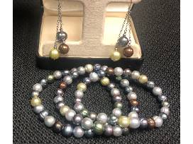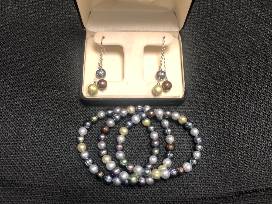 Stay stylish with this beautiful set of pearl earrings and three bracelets!