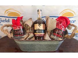 Enjoy a glass of George Remus Straight Bourbon Whiskey in a Sheffield Place whiskey glass. Basket includes a 750 ML of George Remus, two whiskey glasses and a beautiful tin basket. Whiskey is 94 proof.