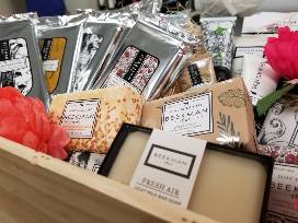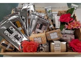A set of our best selling product in our top selling scents (6 2oz hand creams, 6 9oz bar soaps, 6 packs of face wipes)