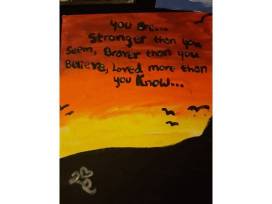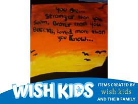 Wish Kid Jazmine, 17, from Troy, whose wish to go to Walt Disney World has been put on hold, wanted to give back to the Make-A-Wish Community. Her beautiful beach painting reminds us we are stronger than we know.