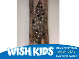 Wooden tree with LED lights made from reclaimed wood, made by Wish Dad Mike Beaulac. Wish Kid Emma (now 6) of Johnsonville had her wish granted to go to Walt Disney World in 2017.