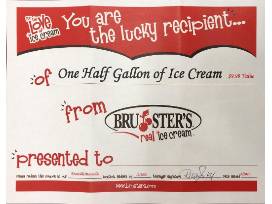 Gift certificate good for (3) half gallons of ice cream.