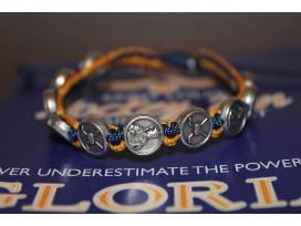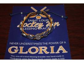 This commemorative hockey fan bracelet is made from custom metals, handcrafted in Italy and Medjugorje. It also features a "Gloria" charm.