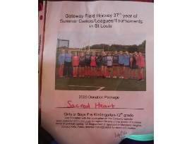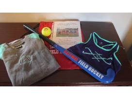 01 week of summer camp at Gateway Field Hockey basket includes a drawstring bag, field hockey stick, active top (medium), sweatshirt (small), key chain and ball