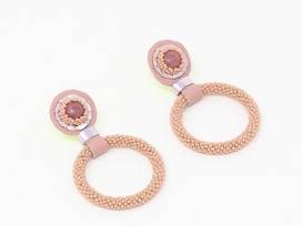 - ROBIN MOLLICONE Beaded hoop earrings in pink monochrome with Rhodonite tops valued at $345 USD