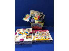 Enjoy a $10 gift card to Buzzes and Beehives in Frankfort, ten one time passes to Jump Zone, a jump rope, Barbie bath bomb, two scrunchies, sidewalk chalk, Glove-a-Bubbles, Easter stickers, pink glasses, six kid tumbler cups, 55 piece Zoobs set, and a colors and shape search and learn 28 piece puzzle!