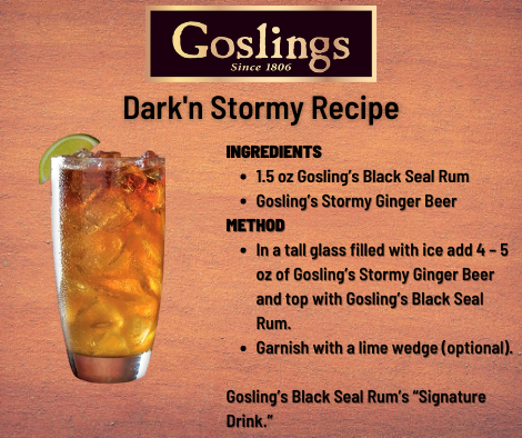 Join us with one of Gosling's signature Dark'n Stormy cocktails! See the recipe below.
