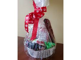 It's time your furry best friend received the best treatment of all! This dog goodie basket includes a dog bowl, American flag collar + leash, Harry Barker dog treats, a bone ornament, a dog tail hanging hook PLUS a $50 gift card to Canine Adventures.