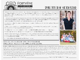 (1) one free weekend* outdoor family photo session at one of the many scenic locations throughout the Houston area at which FortyFive Photos regularly meets clients (to be completed within six to seven months of the date of the event - specific deadline will be stated on certificate provided after donation is finalized); (2) two 8x10 prints from the winner's favorite image of the session (both auction-winning prints must be of the same original image); and (3) 20% off all additional items, including Digital Packages and Fine Art Gallery Wrapped Canvas Prints, purchased at the same time auction-winning print selections are redeemed. * One long weekend a month, approximately will be available for auction winners to redeem their packages.