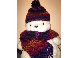 Enjoy this cozy set of knit 100% acrylic hat and scarf in lovely deep colors.