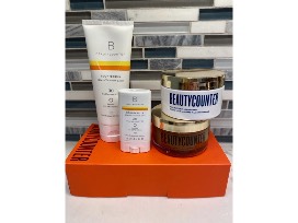 Beautycounter basket 2- Love Your Skin, includes- Lemon Grass Body set with body butter and sugar scrub, Countersun mineral sunscreen lotion SPF 30, and Countersun mineral sunscreen stick SPF 30. $109 value plus $25 gift certificate.