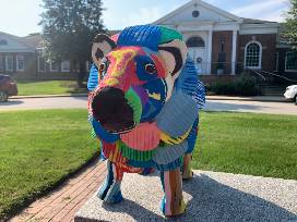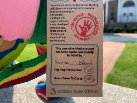 This Lion was handmade in Kenya from recycled flip flops. These flip flops were in the ocean and washed up on the beaches of Kenya. The locals collect, clean, and cut these discarded flip-flops from their shores to create vibrant and colorful "one-of-a-kind" products.