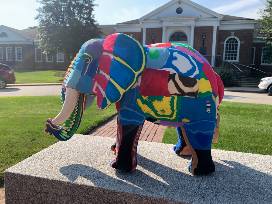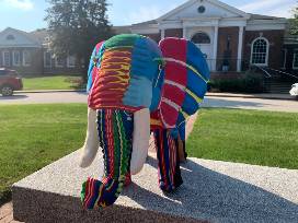 This elephant was hand-carved by Kenyan native Florence Falo with 80 recycled flip flops, taking 2 days to make. These flip flops were in the ocean and washed up on the beaches of Kenya. Locals collect, clean, and cut all discarded flip-flops from their shores to protect the environment and create vibrant and colorful "one-of-a-kind" products.