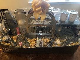 Everything for your wine enthusiast! Includes 4, 187ml champagne splits, Rabbit Champagne and Wine Sealer, Iona Prep Corkcicle wine bottle chiller and bottle stopper, 6 Krosno wine glasses, Food Network electric wine bottle chiller, The Blanc Savgnon Blanc 2019 Lodi, The Zin 2019 Zinfadel Lodi, 90+ Ninety Cellars Pinot Noir, American Art Decor Rustic wood and metal 9 Bottle wine rack and a Corkcicle White Stemless 12oz. wine glass.