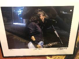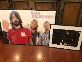 Rock 'N' Roll collectors, this is for you! A large framed Foo Fighters poster is autographed by frontman Dave Grohl (musician, singer and songwriter for Nirvana and Foo Fighters, who also presented the late Patrick Quinn '01 with his 2019 Webby Award) and Foo Fighters drummer Taylor Hawkins. A smaller companion frame showcases a picture of Grohl signed by photographer Rick Gilbert, a leading event, lifestyle and portrait photographer who has been the go-to for legendary concert promoter John Scher for over a decade.